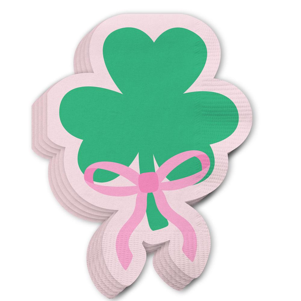 Elevate your celebration! 🎉 Be the cutest clover in the patch with this preppy sprinkle of shamrocks tied with pink ribbon bows on a pink background. 🎀