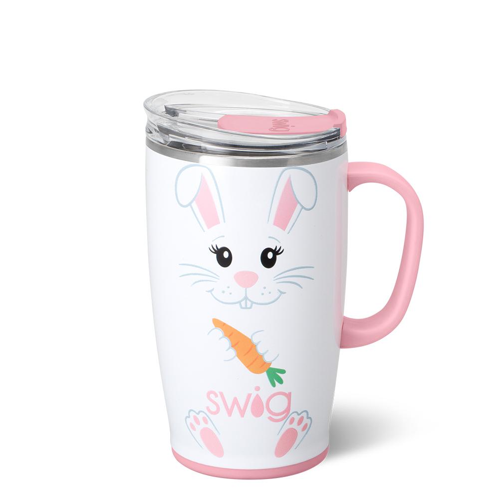 Take a "swig" of whatever fuels your day!☕🚗 Hippity Hoppity here comes the Easter Bunny! 🐰 This glitter white bunny with pink accents, hops into the season holding a freshly picked carrot.
