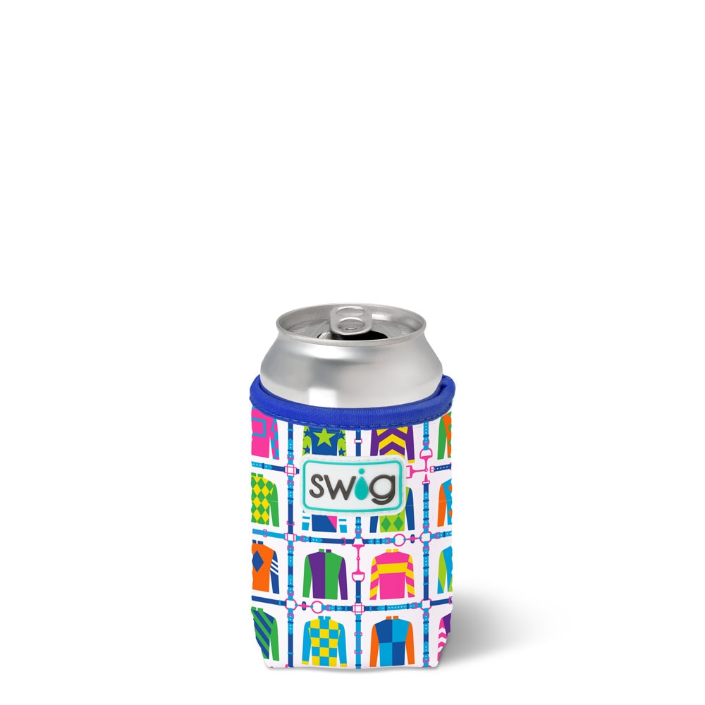 Cool drinks, dry hands!🍺 Place your bets, the jockeys are heading to the starting gate! 🏇 Celebrate Derby Day with this bright and colorful pattern of jockey silks and bridles on a white background.