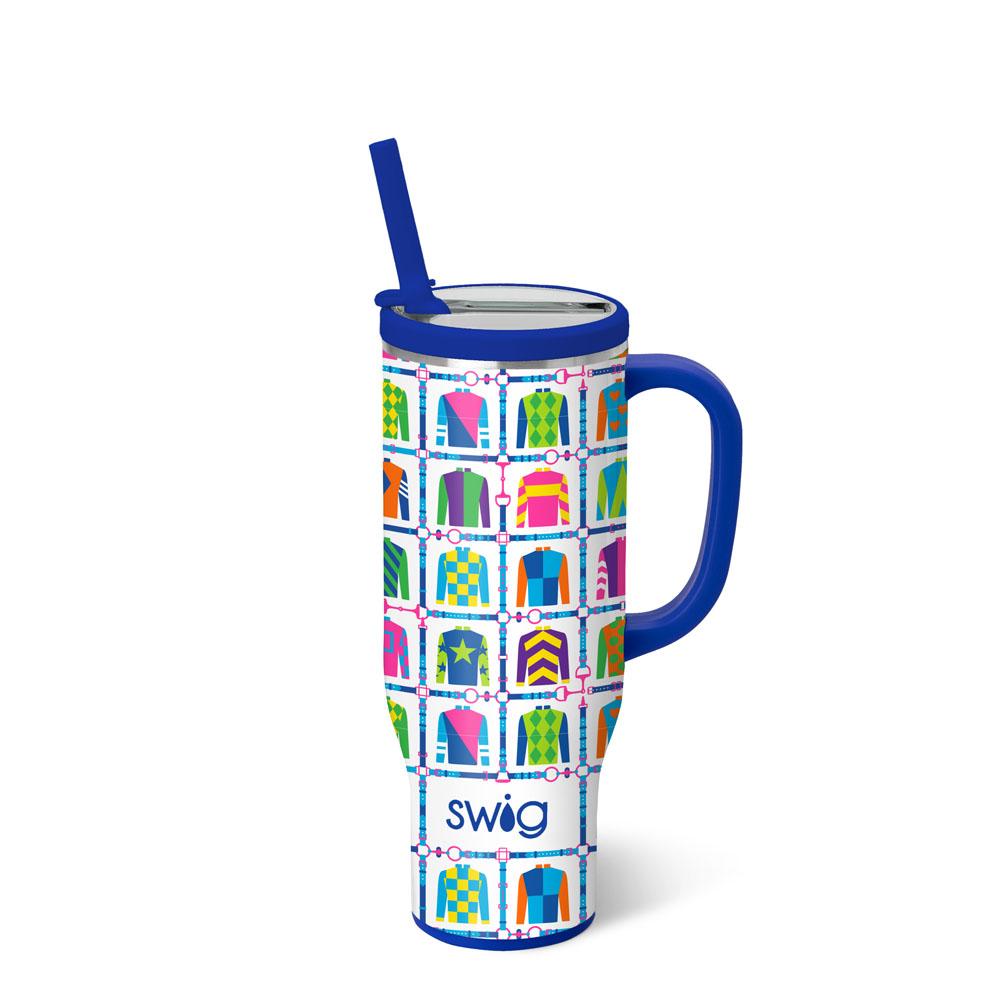 New lid, zero leaks, same great size! 🧊 Place your bets, the jockeys are heading to the starting gate! 🏇 Celebrate Derby Day with this bright and colorful pattern of jockey silks and bridles on a glitter white background.