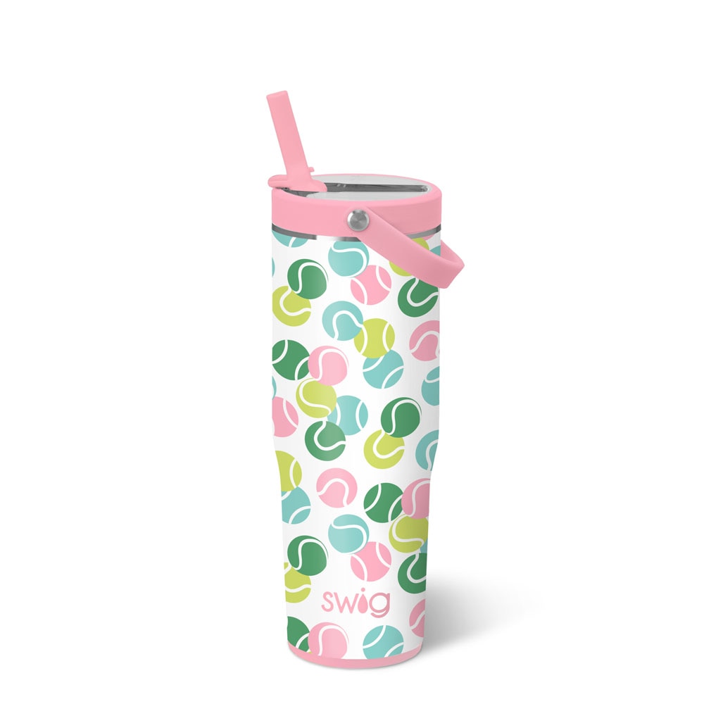This To-Go tumbler combines our new dual threaded Flip + Sip leakproof lid, flex carry handle, and is cup holder-friendly. The straw features a curved tab that makes it easy to flip open for smooth sipping. When you're on the go, snap the straw shut for a leakproof, worry-free experience.