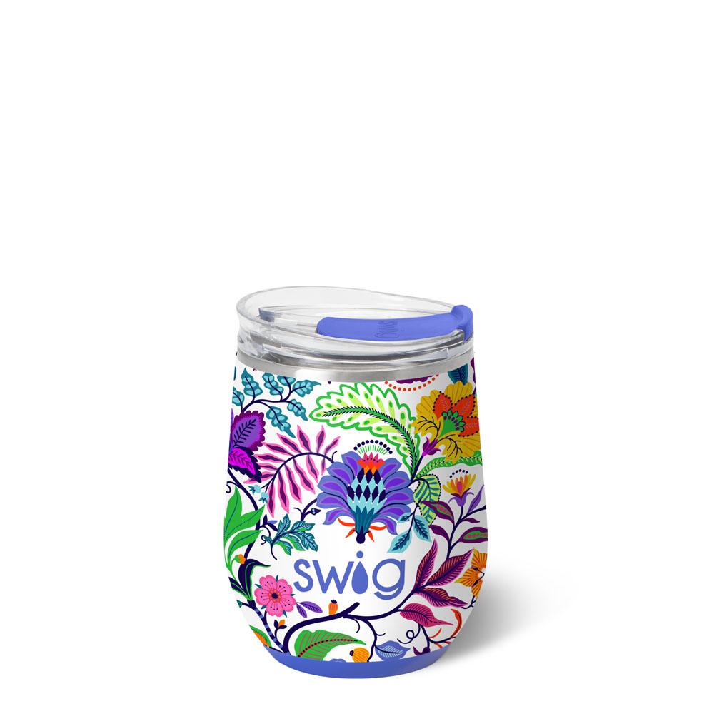 The Swig that started it all!✨ This print bursts with vibrant energy and color, featuring a kaleidoscope of bold florals, leafy botanicals, and tangling vines on a glitter white background. 🌿